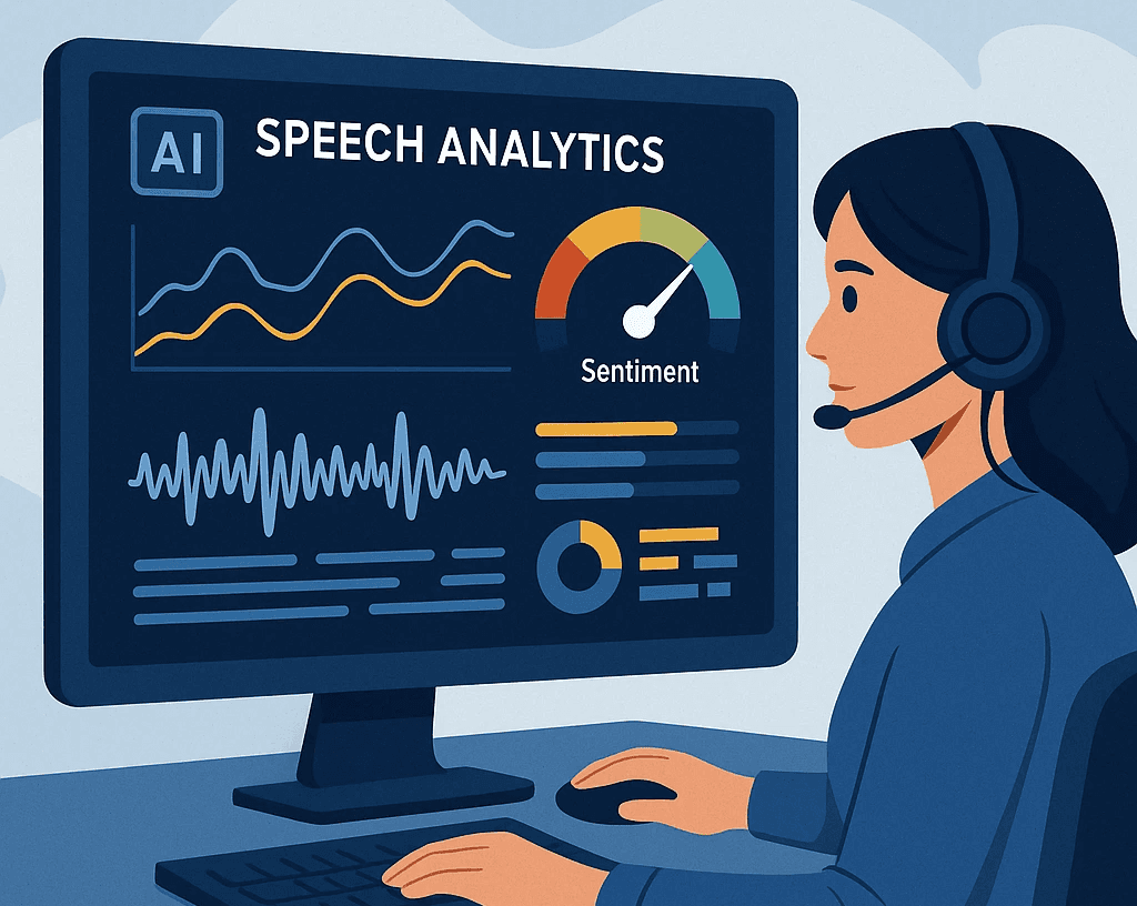 Speech analytics is a technology that uses AI to analyze customer conversations, uncover insights, detect emotions, and identify trends. It helps support teams understand customer needs, improve service quality, and streamline operations.