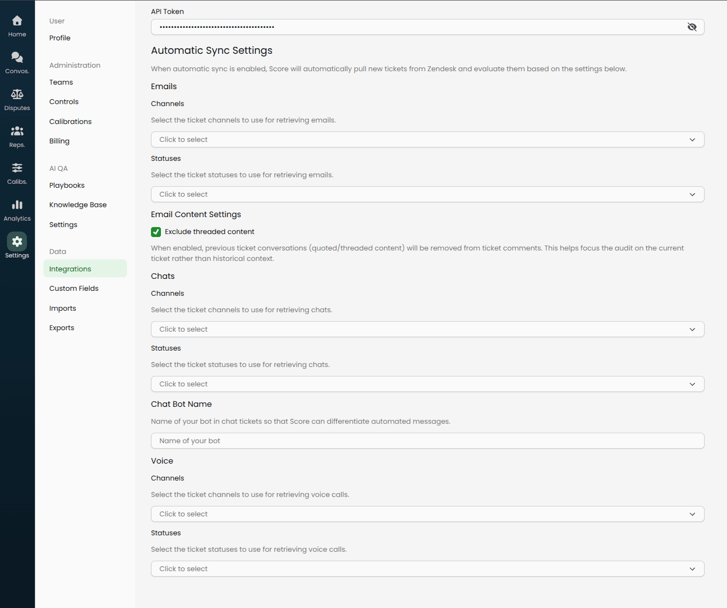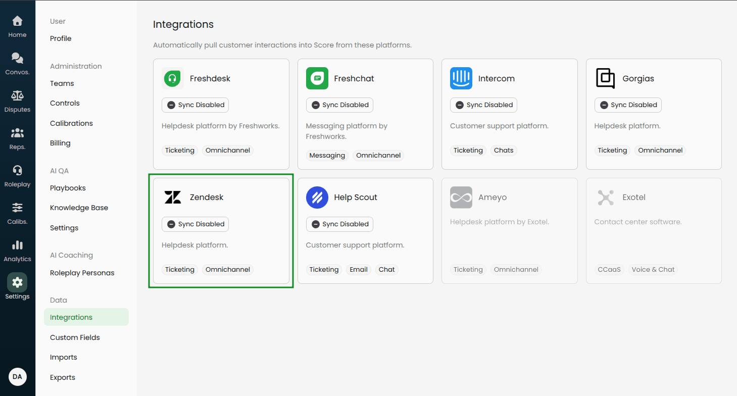 Automatically pull tickets into Score for evaluation with your QA scorecards.