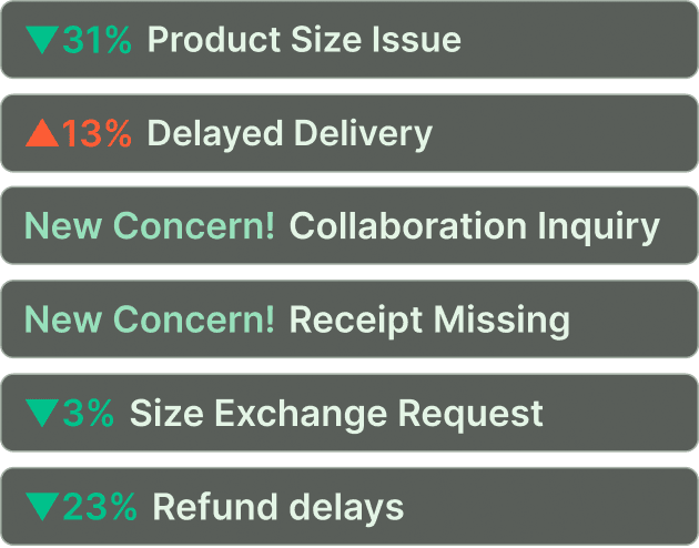 Auto-categorizes concerns into topics & sub-topics to generate reports and take proactive actions.